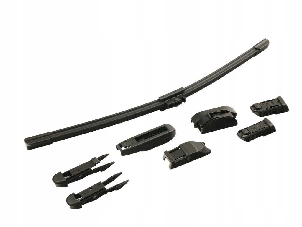 W zestawie różnego rodzaju mocowania piór wycieraczek
